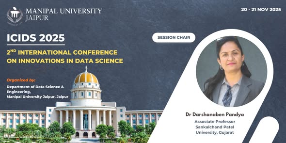 Dr. DarshanaPandya invited as a Session Chair at the International Conference on Innovations in Data Science(ICIDS 2025) at Manipal university , jaipur ,Rajasthan.